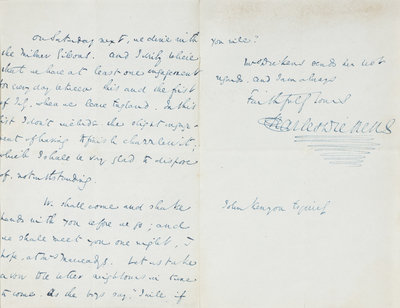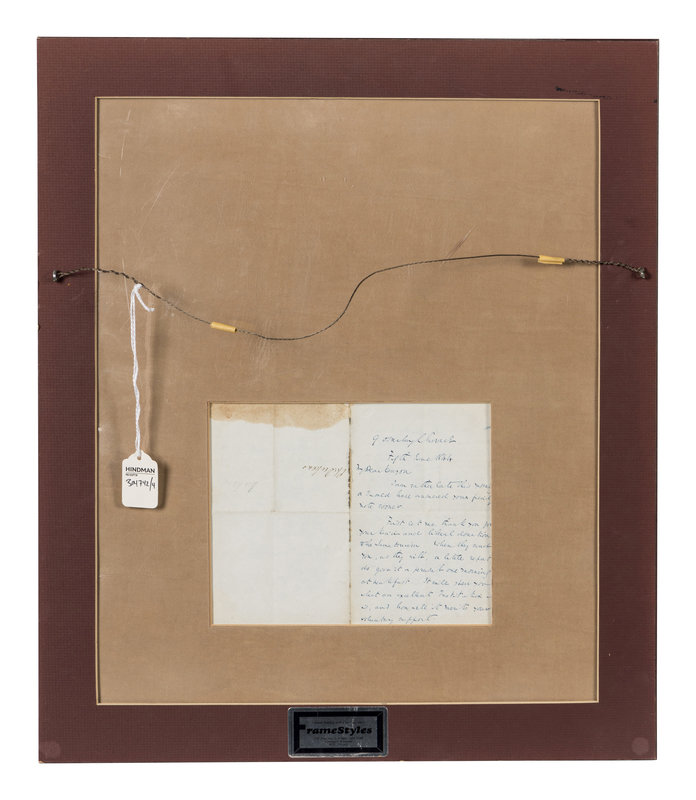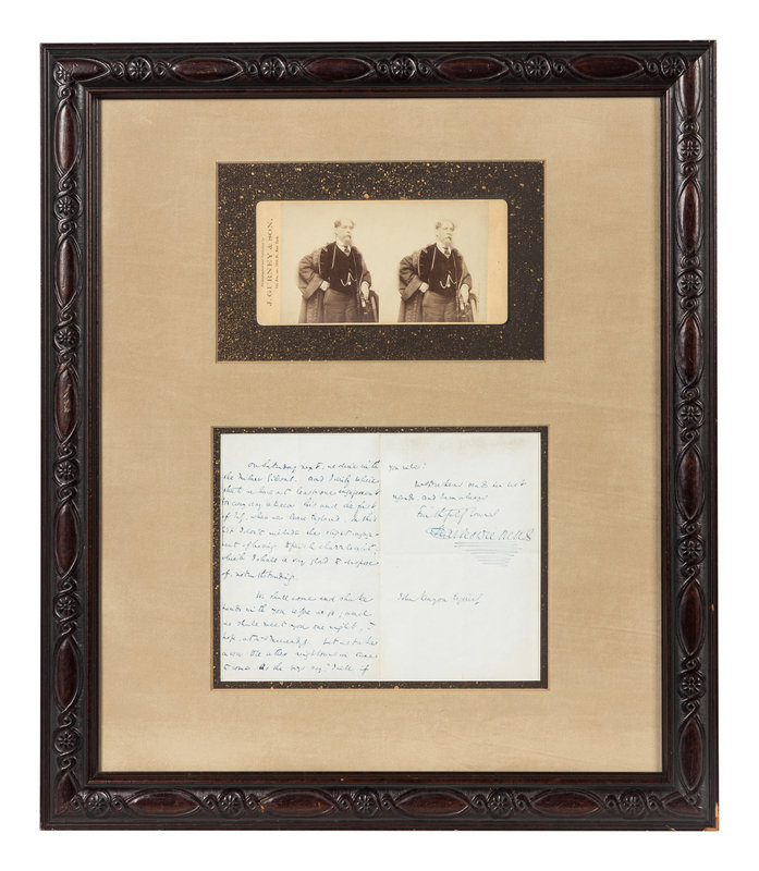 3 pages, 8vo, on a bifolium, minor adhesion and mounting remnants on verso of final page of text (with very light show-through in blank upper margin on recto). Matted with a stereoscope photograph portrait by J. Gurney & Son, unexamined out of frame.