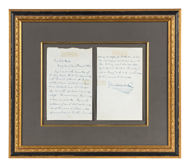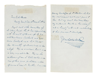 DICKENS, Charles (1812-1870). Autograph letter signed (“Charles Dickens”), to the Committee of the Royal Literary Fund [in text], 27 March 1854.