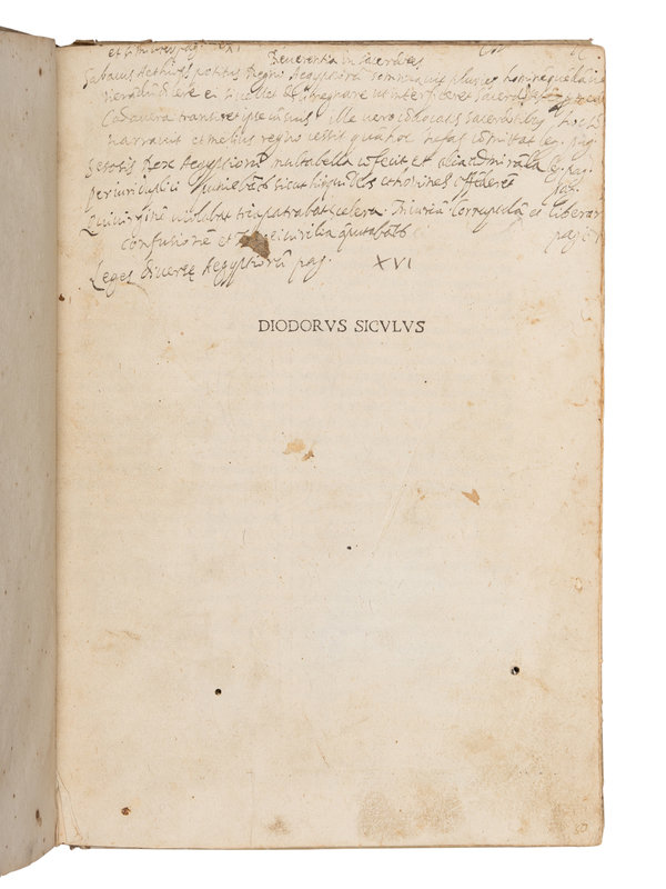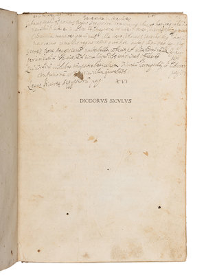 DIODORUS Siculus (fl. 60-30 B.C.). Bibliothecae historicae libri VI. Translated Poggius Florentinus, edited by Bartholomaeus Merula. Venice: Johannes Tacuinus, de Tridino, 20 September 1496.