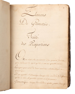 [MANUSCRIPTS—MATHEMATICS]. “Elemens de Geometrie a l’usage des enfans de France.” [France, 18th century].