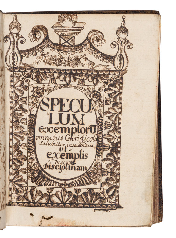 A close reprint of the edition of 1 March 1490. Long attributed to Aegidius Aurifaber, the Speculum exemplorum is now more commonly considered to be the work of Johannes Busch. This collection first appeared in 1481, and is a compilation of monk's legends after the "Gesta Romanorum", and from works by Gregorius Magnus, Petrus Amianus, Hieronymus Presbyter, Beda, and others. Goff S655; H 14919*; Pell 1619; BMC I, 144; BSB-Ink S-507; GW M42959; ISTC is00655000.