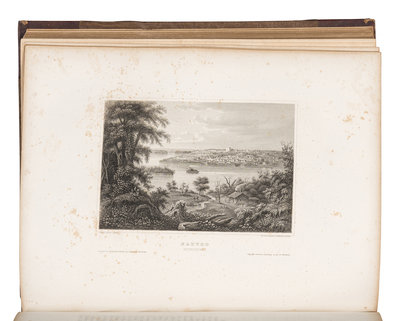 FIRST EDITION with steel-engraved plates, most after Herrmann J. Meyer. Scenes depict the United States, including views of the East Coast, the Mississippi Valley, and California. Includes an engraving and 10pp. of text about Nauvoo, the Mormon settlement in Illinois. Howes D-45; Flake 2657; Sabin 18396 (calling for only 36 plates).