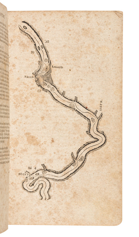 2 parts in one, 12mo (182 x 103 mm). 16 maps (all but one full page). (Loss to lower edge of one plate not affecting text nor image, some spotting and toning.) Contemporary calf-backed boards (with later green morocco rebacking, some wear and minor worming). Provenance: David Swartzlander (ownership stamp); Dudley Bell Priester (1923-2017), Mississippi River collector and bibliographer (bookplate, sold Bloomsbury, 20 November 2009, lot 80).