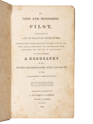 FIRST EDITION of Gilleland's early western guide, with one of the earliest, albeit brief, descriptions of Cleveland. The first part includes directions and charts for navigating the Ohio River from Pittsburgh to its confluence with the Mississippi in Cario, Illinois. The second part has a separate title-page but continuous pagination. "Nine pages of this deal with the natural and political geography of Illinois" (Buck). While Howes, Sabin, Thomson and others claim the present work was based on Zadok Cramer's Navigator, Streeter's examination led him to declare that "Gilleland's observations were quite independent of Cramer's." Buck 158; Howes G-173; Sabin 27389; Streeter 1332; Thomson 447.