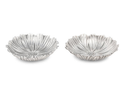 A Pair of Buccellati Silver Lotus Flower Dishes