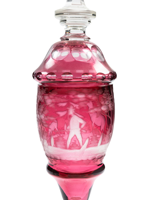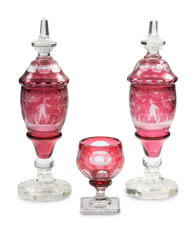 A Pair of Bohemian Red Cut-to-Clear Glass Pokals