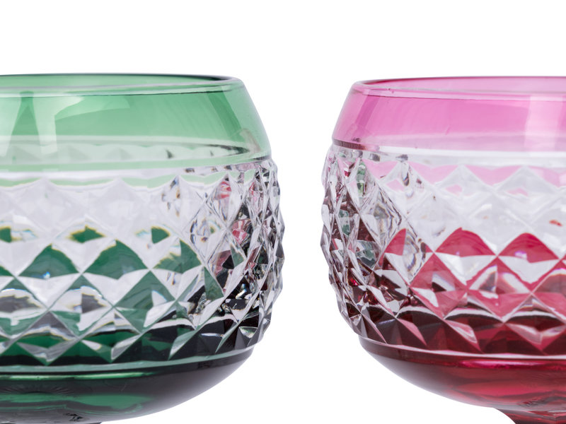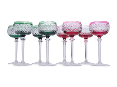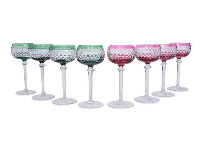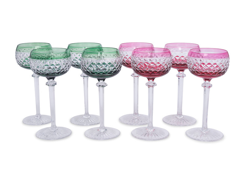 A Set of Eight Val St. Lambert Colored and Cut Glass Wine Hocks