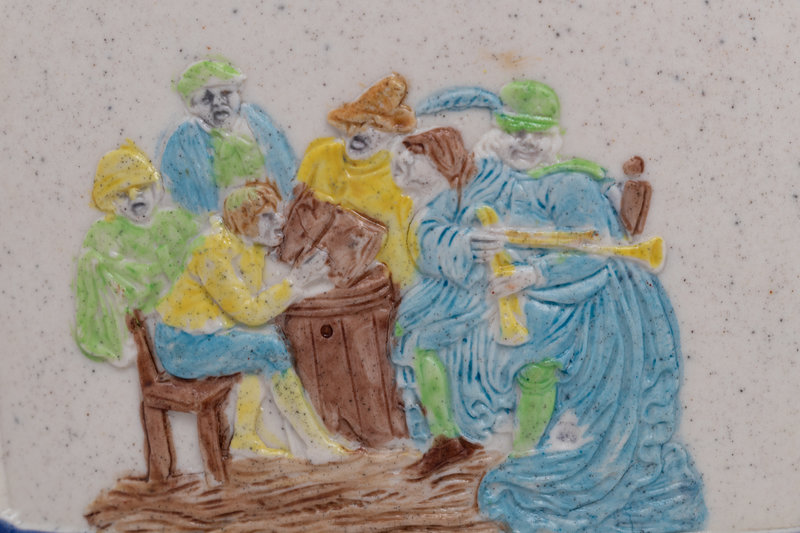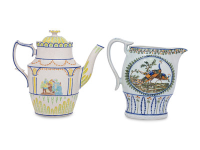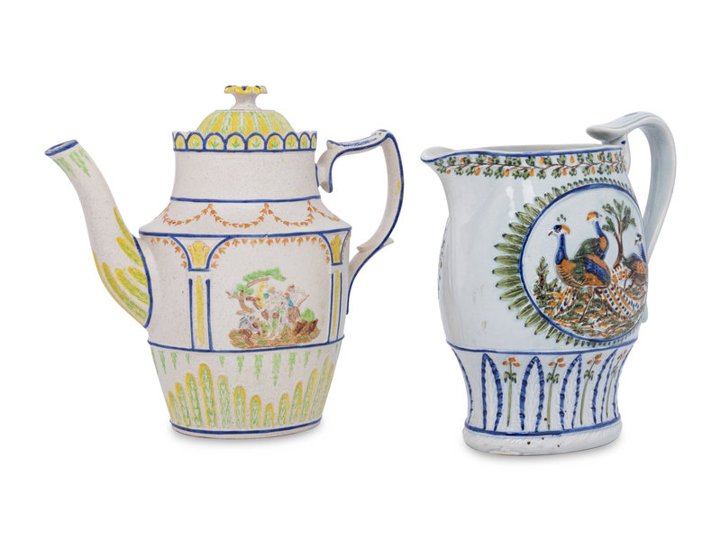 An English Prattware Pitcher and a Stoneware Coffee Pot