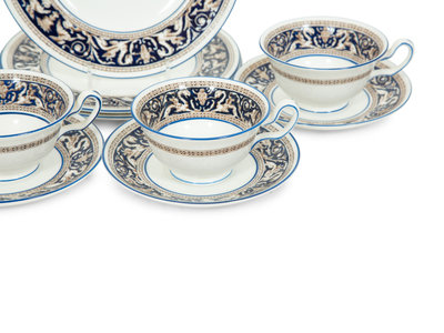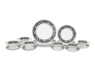 A Wedgwood Florentine Dark Blue Porcelain Dinner Service