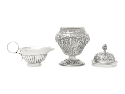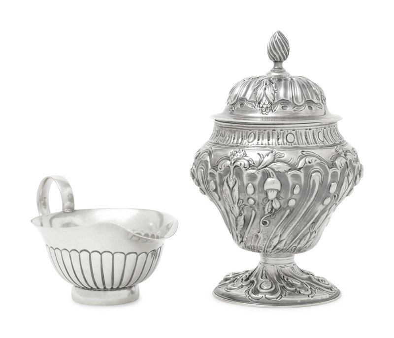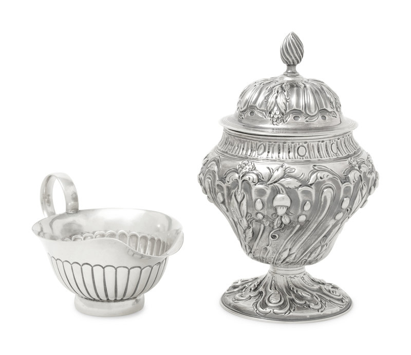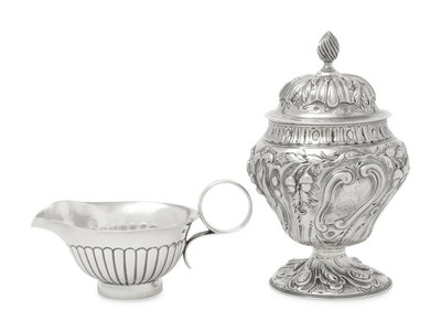 together with a silver creamer by Heath & Middleton, Birmingham, 1905.