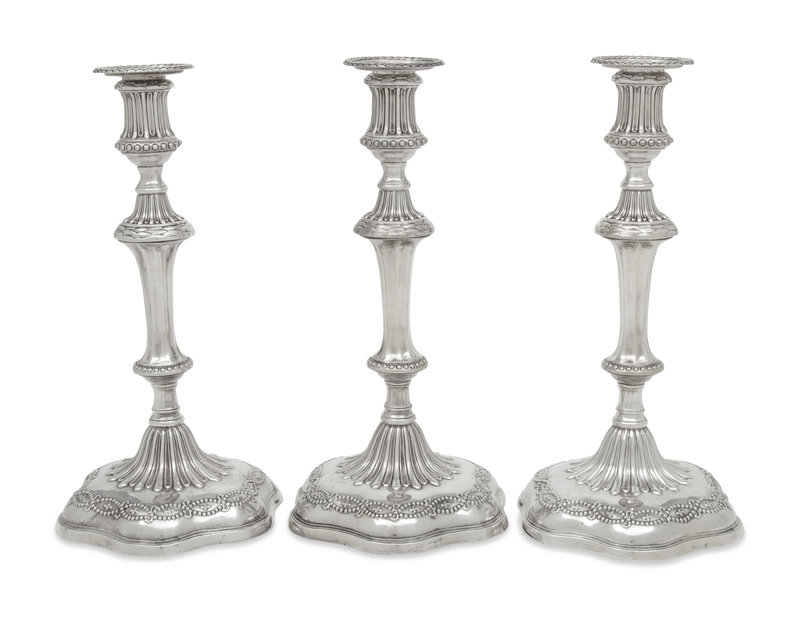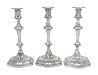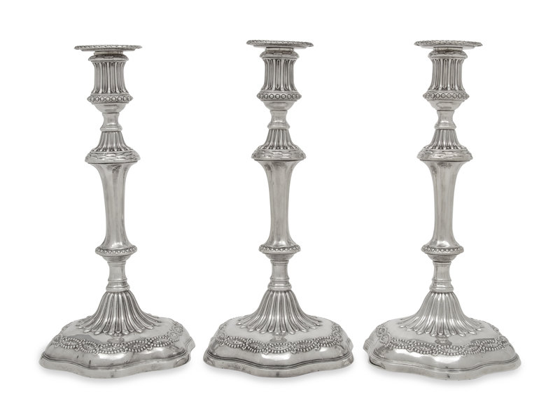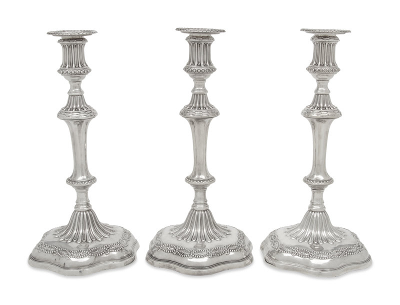 A Set of Three George III Silver Candlesticks