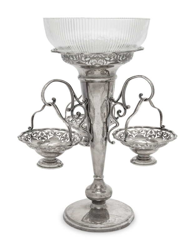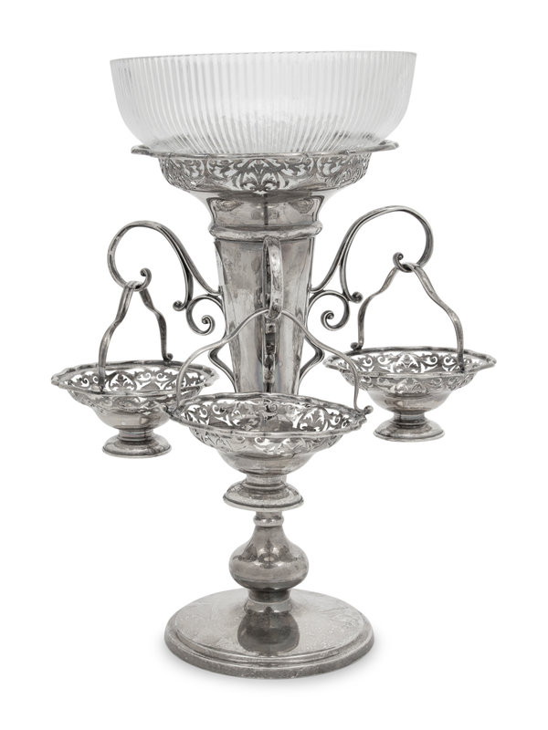 the stand hallmarked and stamped '21741' to foot, each basket hallmarked to body