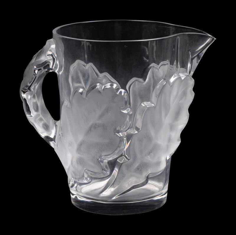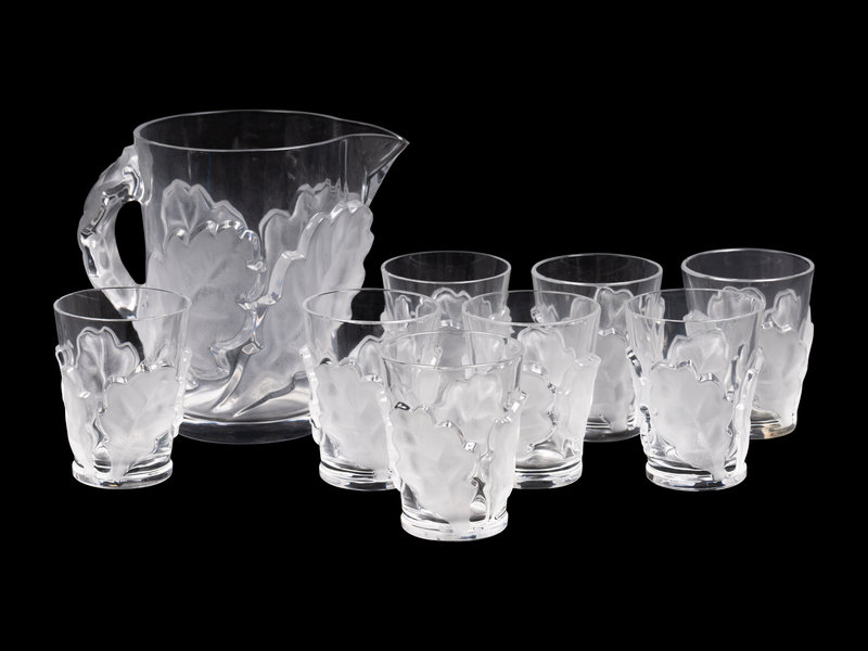 A Lalique Chene Pitcher and Eight Glasses