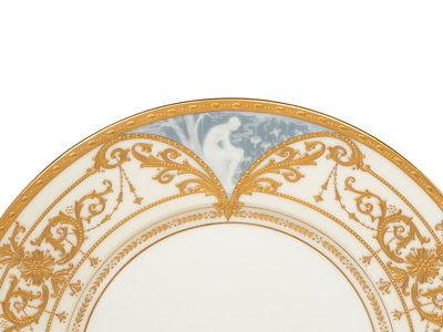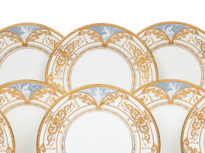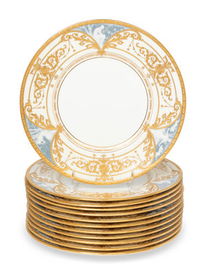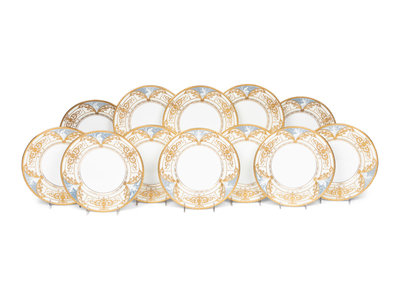 A Set of Twelve Mintons Pâte-sur-Pâte Parcel-Gilt Porcelain Plates