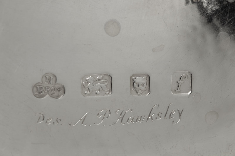 hallmarked for Sterling and engraved 'Des. A.P. Hawksley' on underside