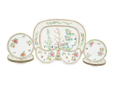 comprising four dinner plates, four salad plates, two crescent plates and a well-and-tree platter; 11 items total.