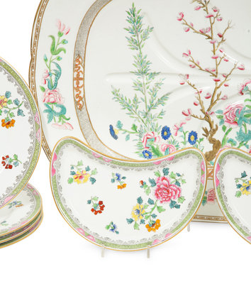 A Spode Copeland Porcelain Peony Chinoiserie Dinner Service