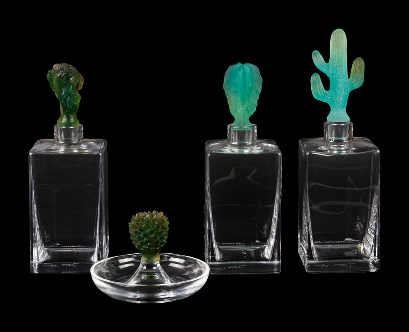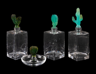 Three Daum Pâte-de-Verre Cactus Decanters and a Ring Tray