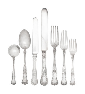 Melrose pattern, with engraved script monogram 'K' to the handles, comprising: