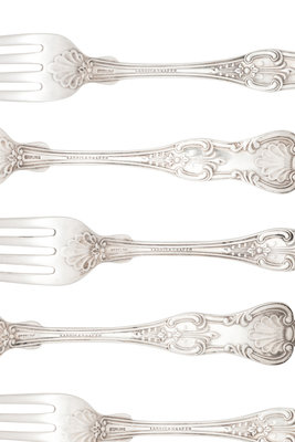Kings pattern, with engraved monogram 'R' on the handles.