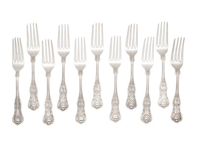 A Set of Thirteen Silver Luncheon Forks