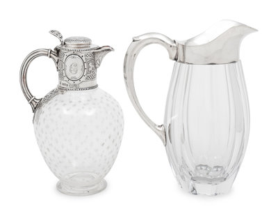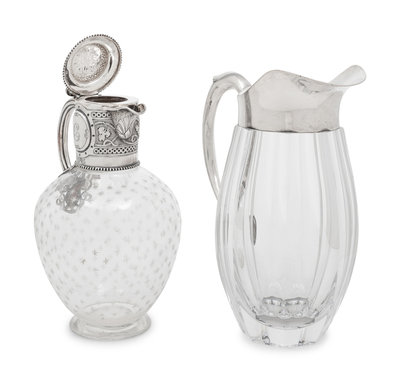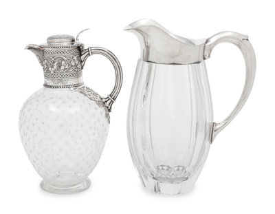 Two Silver-Mounted Glass Pitchers