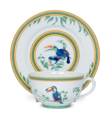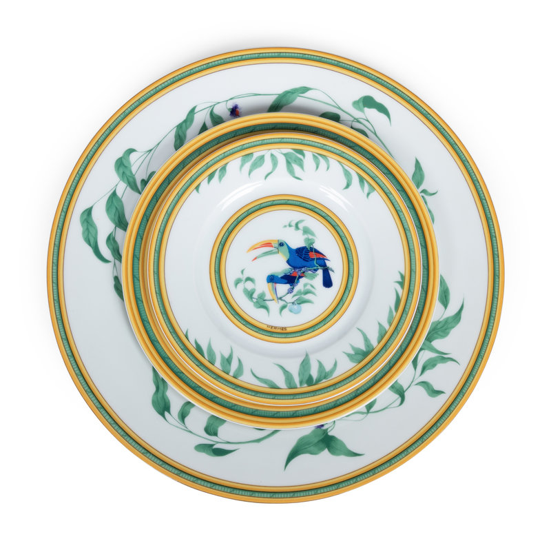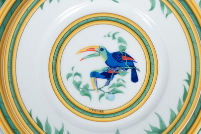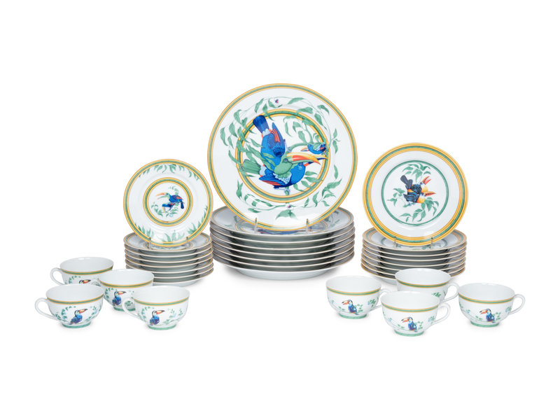 An Hermès Porcelain Toucans Porcelain Dinner Service