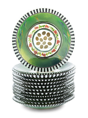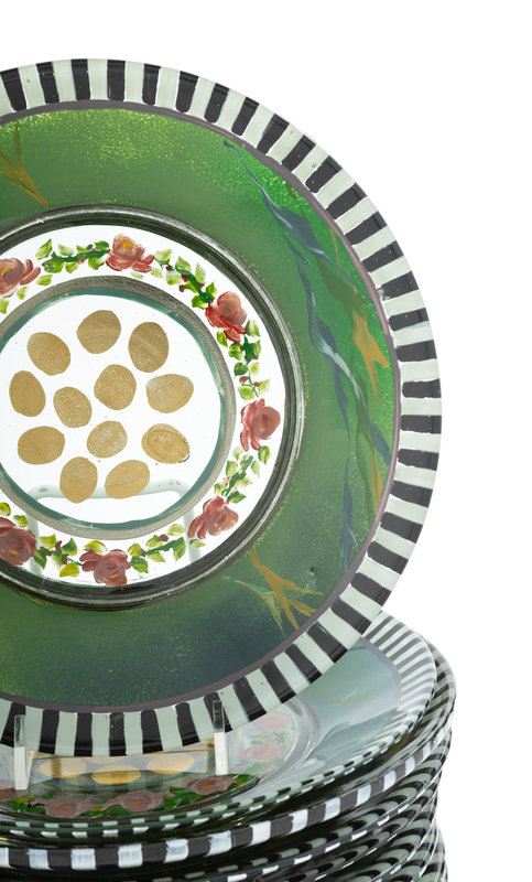 A Set of Twelve MacKenzie-Childs Heirloom Glass Dessert Plates