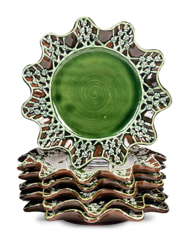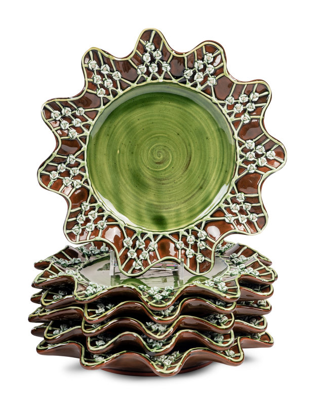 A Set of Eighteen Mackenzie-Childs Wittika Pickle Ceramic Salad Plates