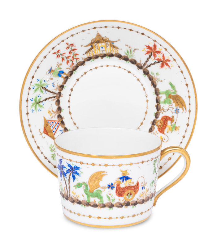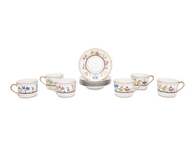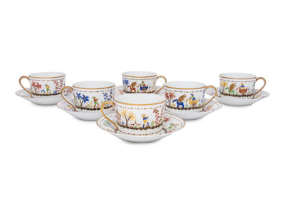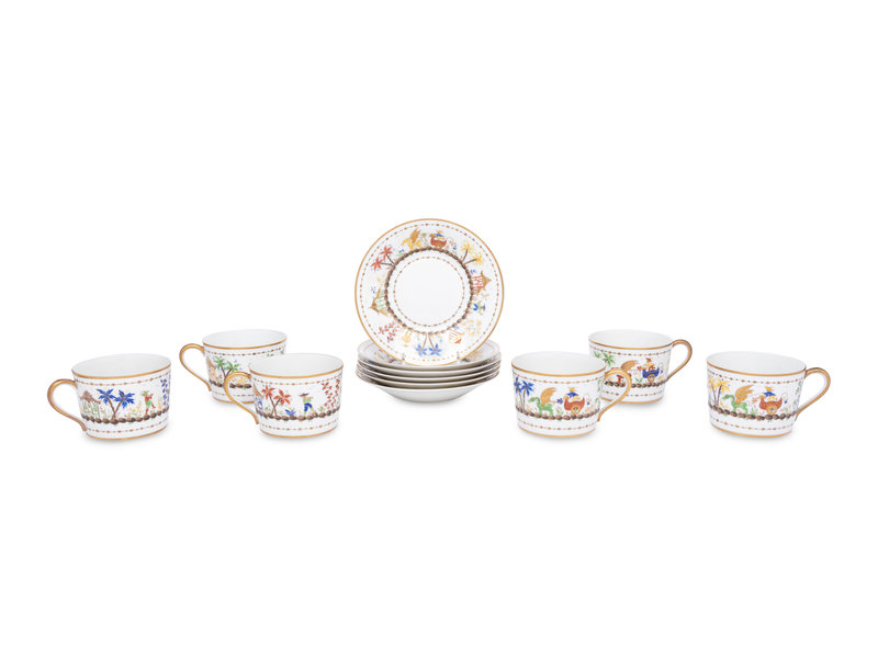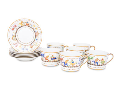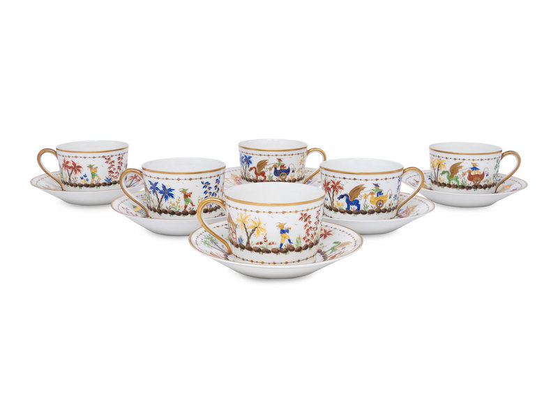 A Set of Six Le Tallec Cirque Chinois Porcelain Cups and Saucers