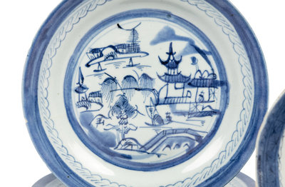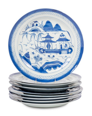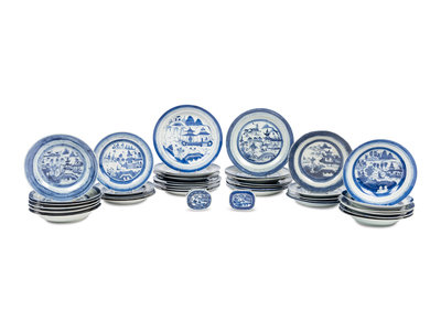 A Group of Canton Blue and White Porcelain Table Articles