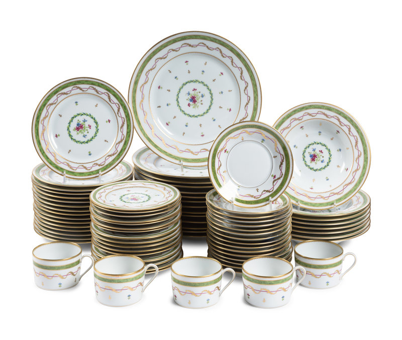 A Limoges Vieux Paris Vert Porcelain Dinner Service