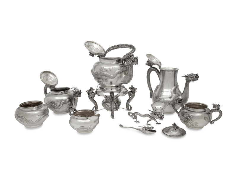 A Chinese Export Silver Seven-Piece Tea and Coffee Service