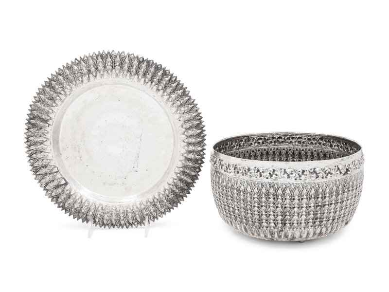 A Southeast Asian Silver Center Bowl and Underplate