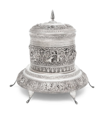 A Southeast Asian Silver Covered Jar on Stand