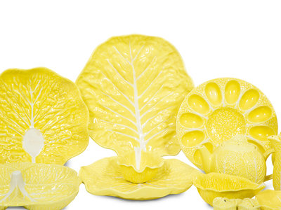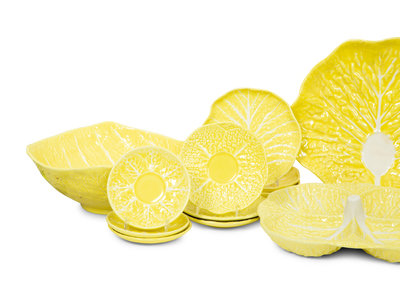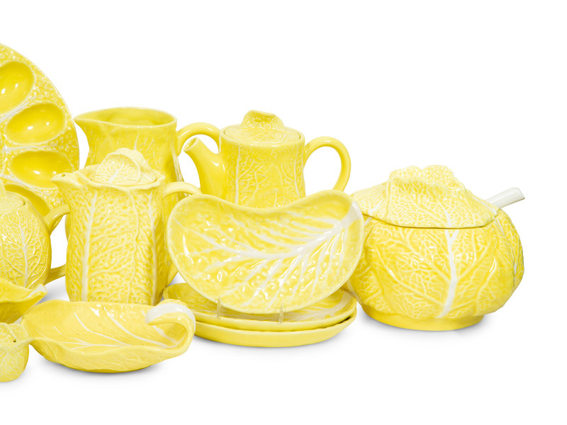 An Extensive Portuguese Yellow Ceramic Lettuce Ware Dinner Service