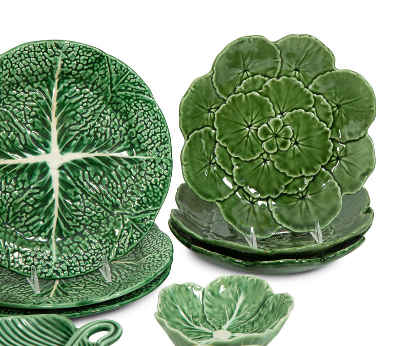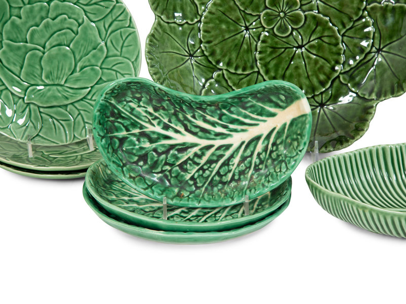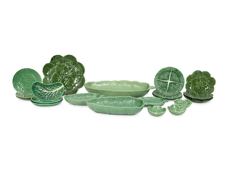 A Large Collection of Portuguese Green Leaf Dinnerware