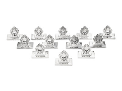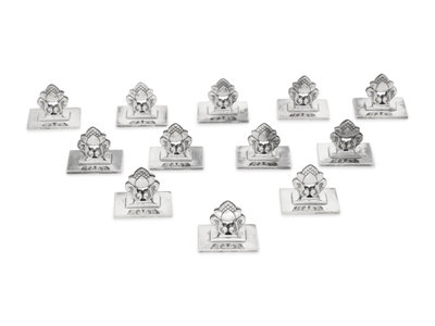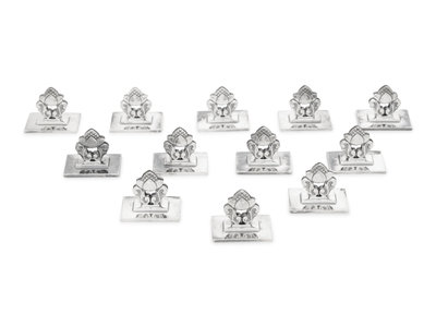 A Set of Twelve Georg Jensen Silver Acorn Place Card Holders