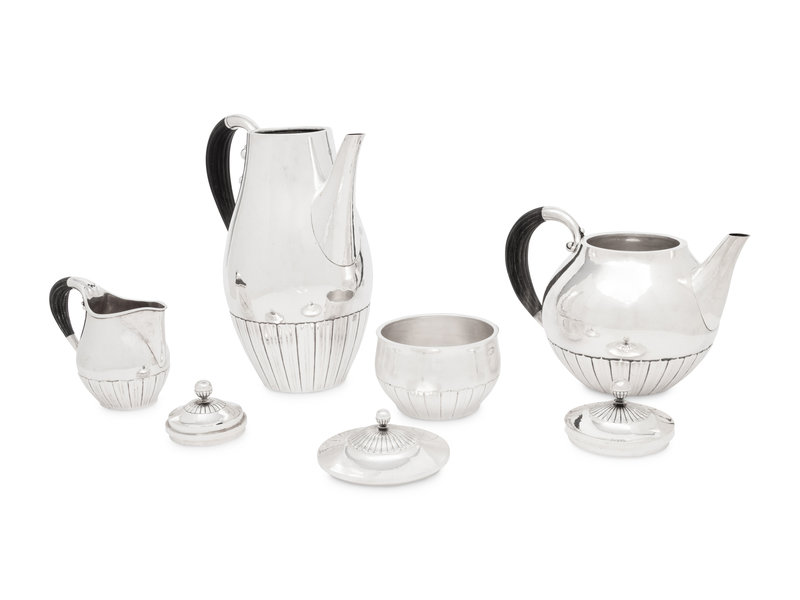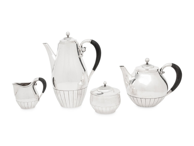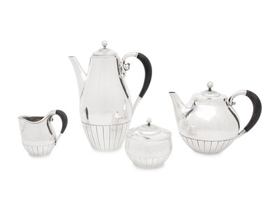A Johan Rohde for Georg Jensen Cosmos Silver Four-Piece Tea Service