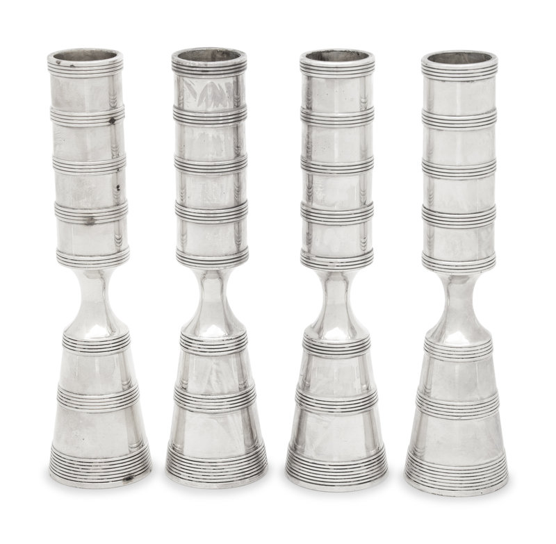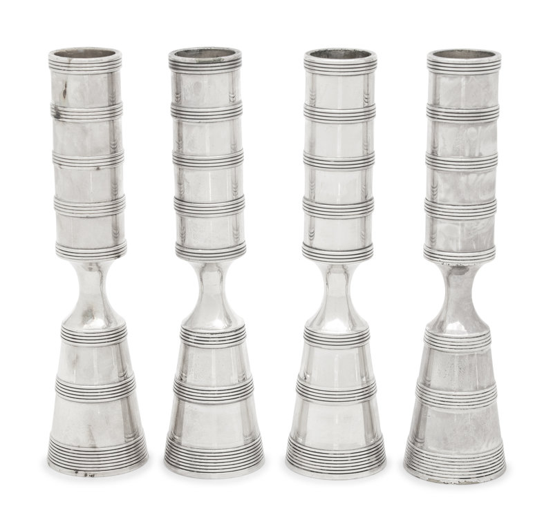 A Set of Four Danish Silvered Metal Candlesticks