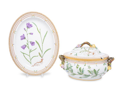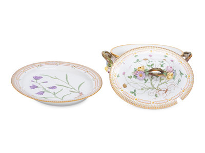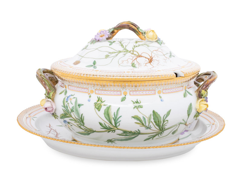 A Royal Copenhagen Flora Danica Porcelain Covered Tureen and Platter