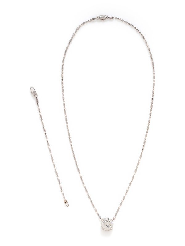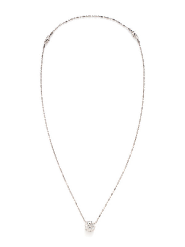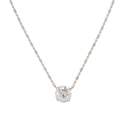 Consisting of a fancy link convertible chain suspending one round brilliant cut diamond weighing 3.27 carats. Mounted in white gold. 14-18 inches long.