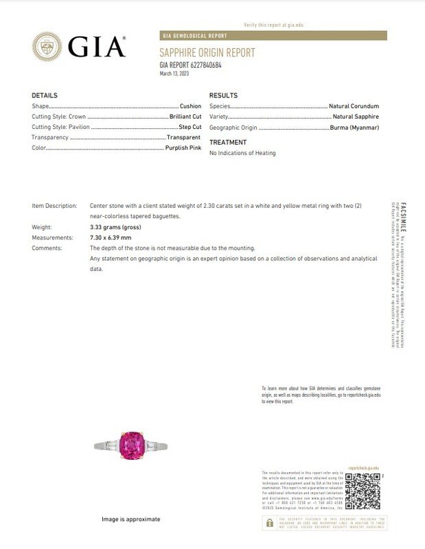 GIA, 2023, Report No. 6227840684, Natural Corundum, Sapphire, Burma (Myanmar), No Heat