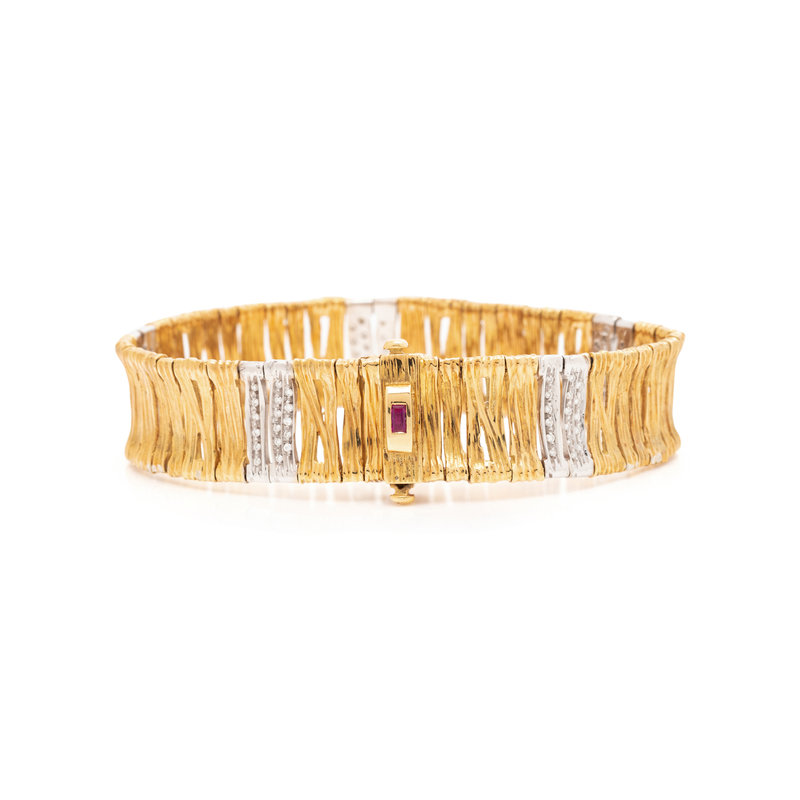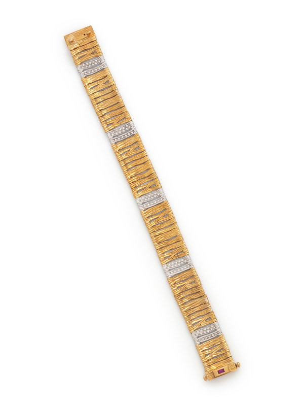 ROBERTO COIN, BICOLOR GOLD AND DIAMOND 'ELEPHANT SKIN' BRACELET