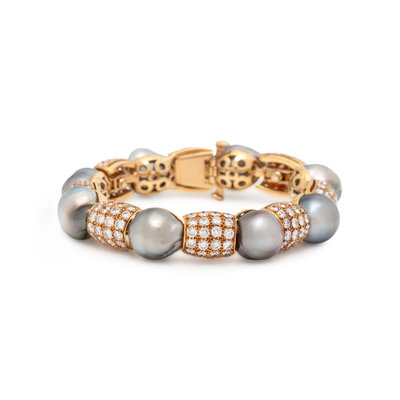 CULTURED TAHITIAN PEARL AND DIAMOND BRACELET