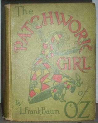 (Oz Book.) Baum, L. Frank. The Patchwork Girl of Oz. Chicago: Reilly & Britton, (1913). First edition, first state. 4to, orig. dark green, red & yellow stamped pictorial light green cloth; edge wear, spine ends & joints slightly frayed, minor dust soiling, spines slightly faded. Color & b/w illustrations & color pictorial endpapers by John R. Neill. Early copy with "C" overlapping text on p. 35.