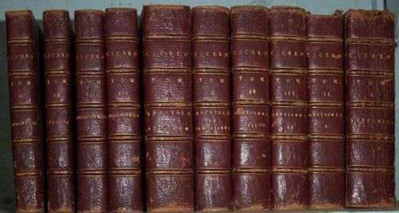 Cicero, Marcus Tullius. Opera. Leiden: Elzevir, 1642. 12mo, 19th-century full scarlett morocco, gilt-paneled & armorial covers, spines richly gilt, a.e.g.; scuffed, joints & spine rubbed. Portrait. Scattered light foxing. Trimmed - no loss of printing. First Elzevir edition.