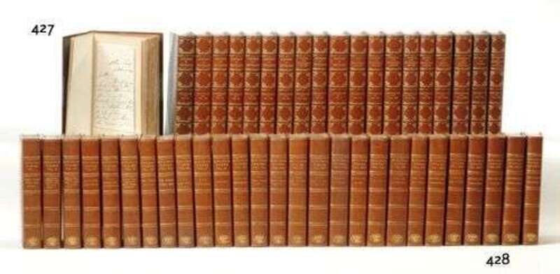 Kipling, Rudyard. [Works]: The Writings in Prose and Verse. New York: Scribner's, 1899-1919. 8vo, contemp. 3/4 brown niger morocco & marbled bds., gilt, spines gilt, t.e.g.; very occasional, very minor scuffing. Plates. Bright, attractive binding.