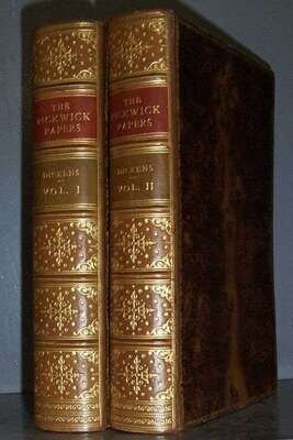 Dickens, Charles. The Posthumous Papers of the Pickwick Club. London: The Piccadilly Fountain Press, 1932. Lombard Street Edition of the Novels of Charles Dickens. 8vo, contemp. full gilt-paneled polished brown tree calf, richly gilt paneled spines, a.e.g., inner dentellles gilt, red & olive morocco spine labels, by Riviere & Son; very occasionally & very lightly scuffed. 43 illus. by R. Seymour, R.W. Buss & "Phiz," facsimiles of original manuscripts & c. Some foxing to front matter.