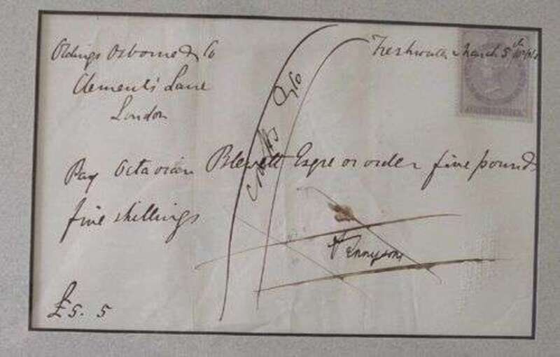 Autograph Pay Order Signed. Tennyson, A(lfred) [Lord]. London, March 5 [18??]. Framed with portrait.